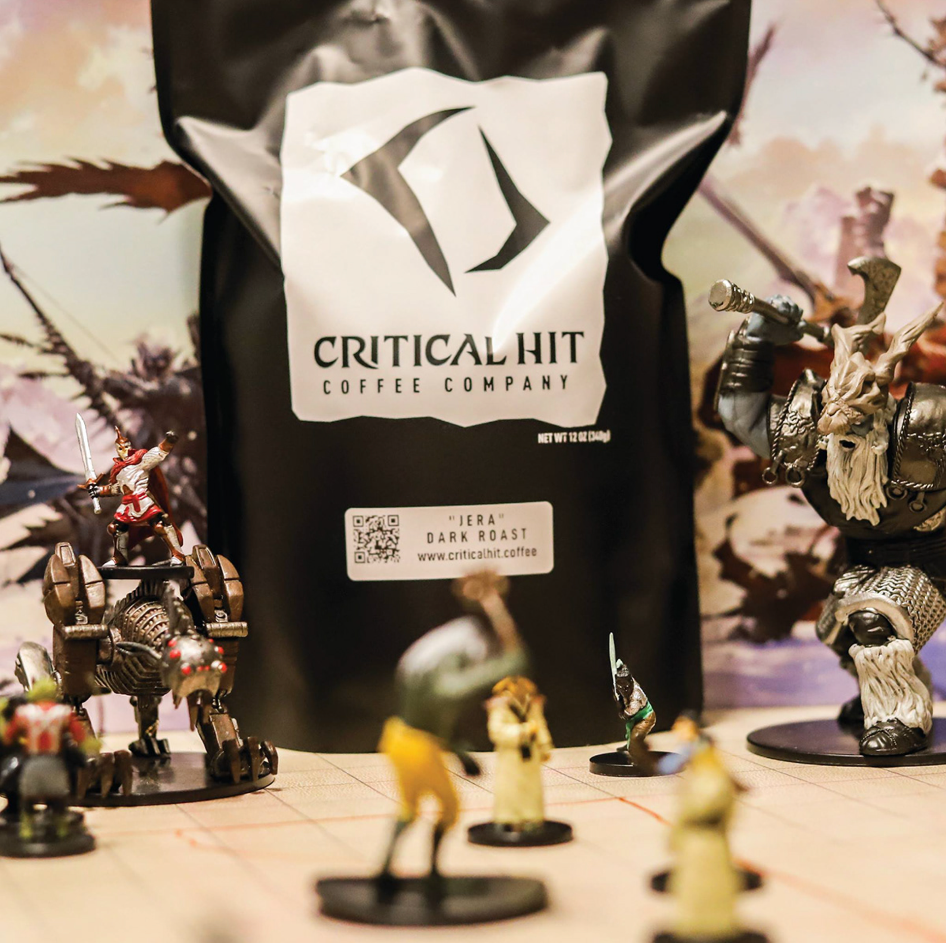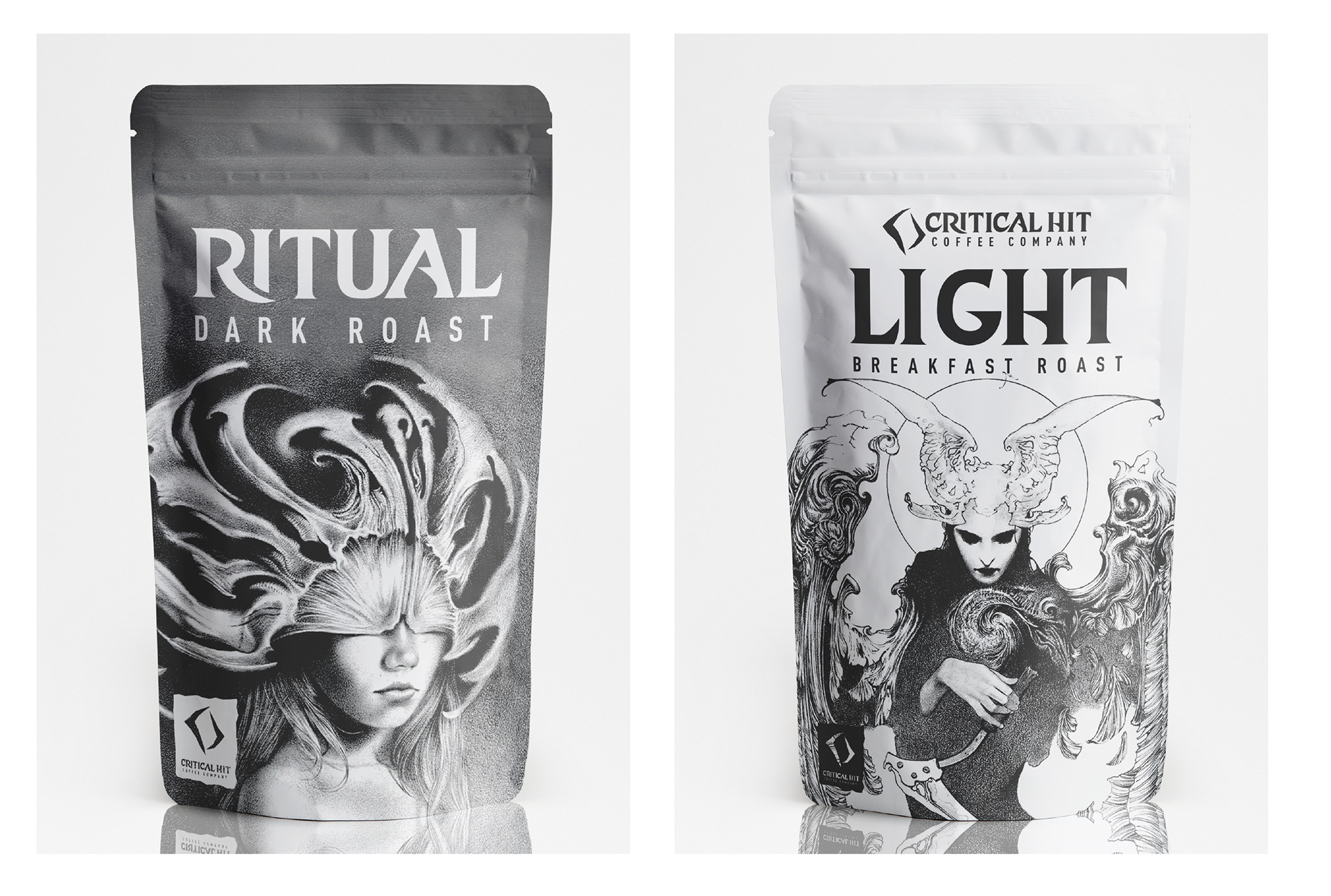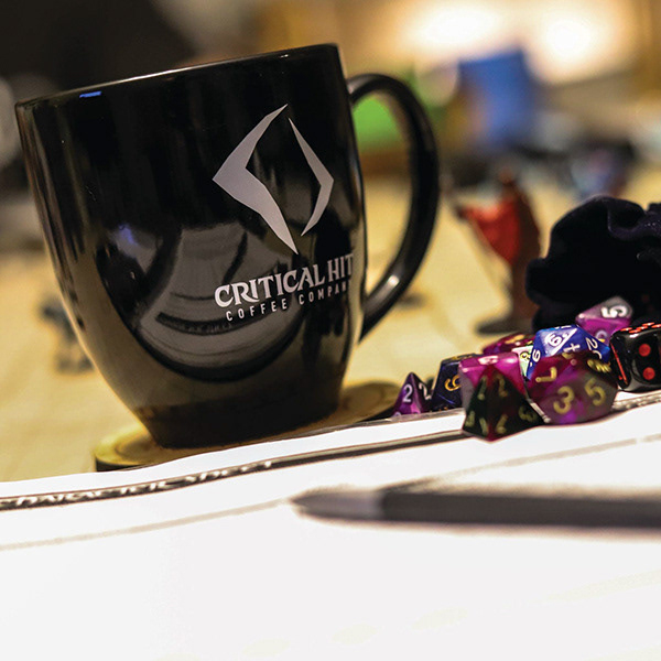 Critical Hit Coffee, a natural 20 when it comes to great coffee. Embracing fantasy and the craft of coffee. Brand leverages high fantasy, dungeons and dragons, and mystical symbols.