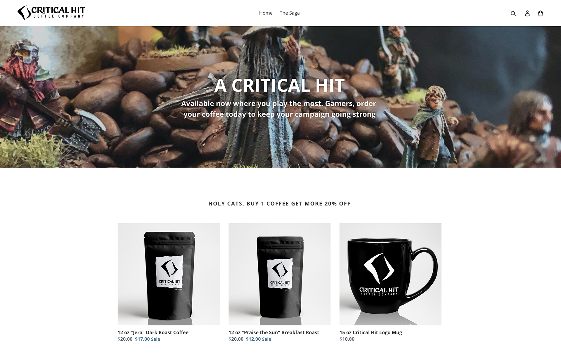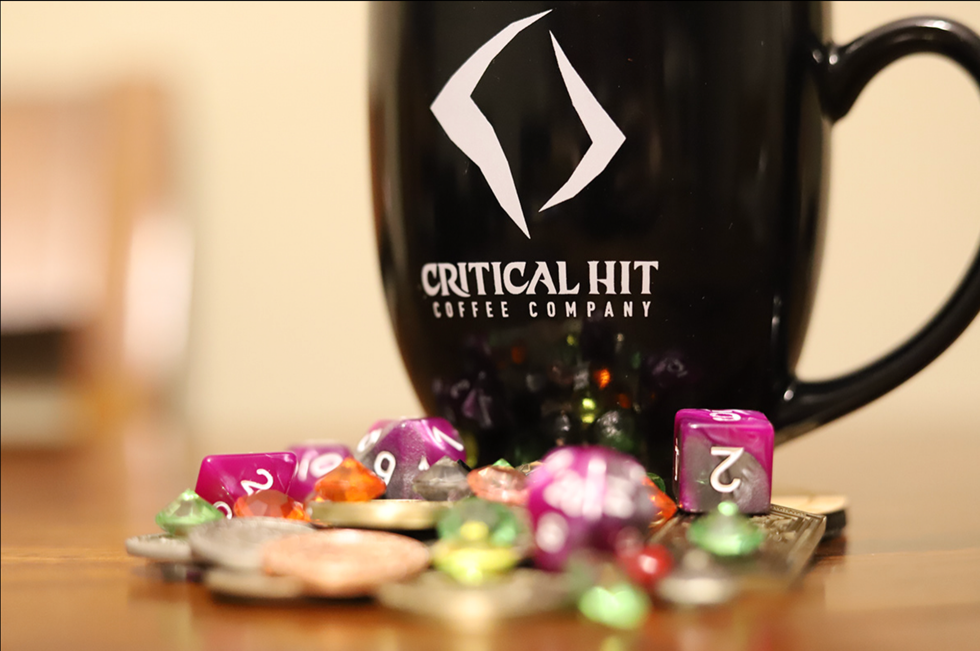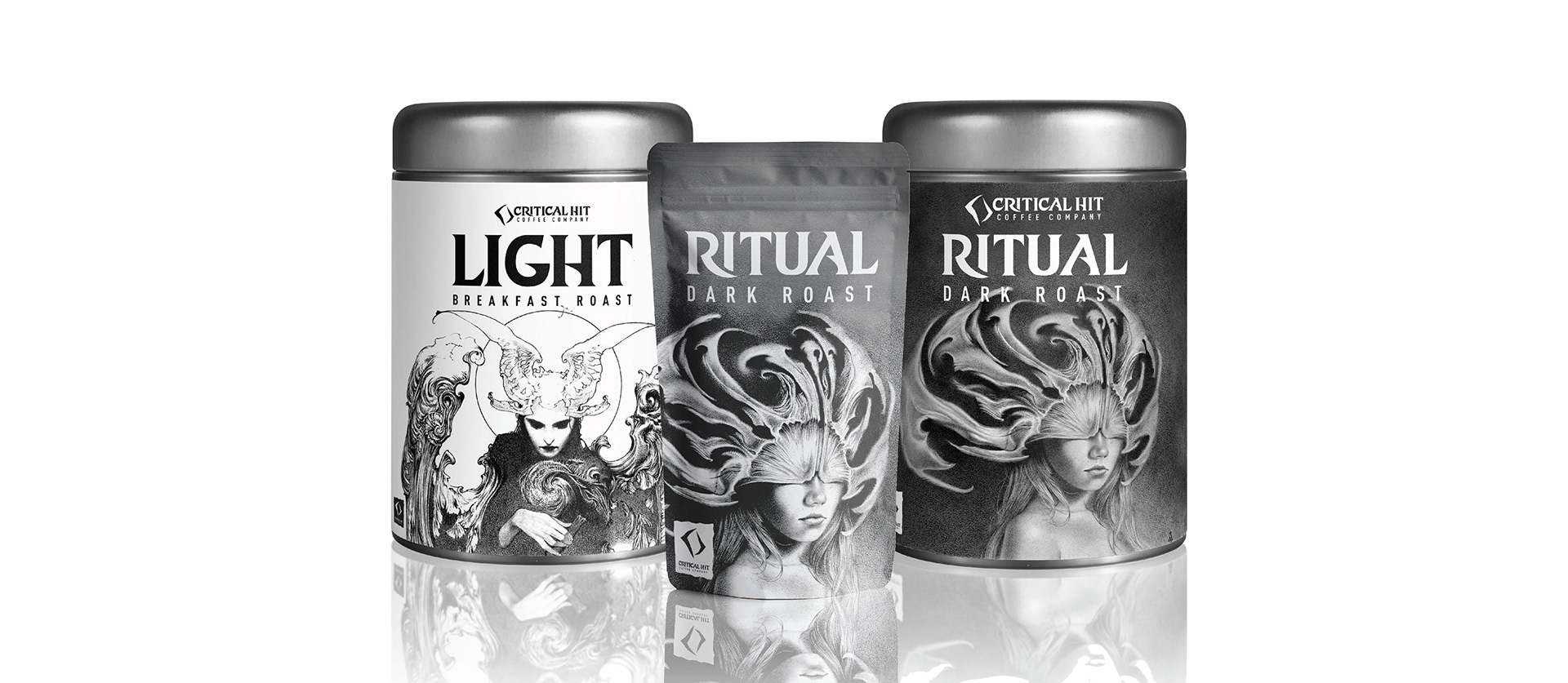 Critical Hit Coffee, a natural 20 when it comes to great coffee. Embracing fantasy and the craft of coffee. Brand leverages high fantasy, dungeons and dragons, and mystical symbols.